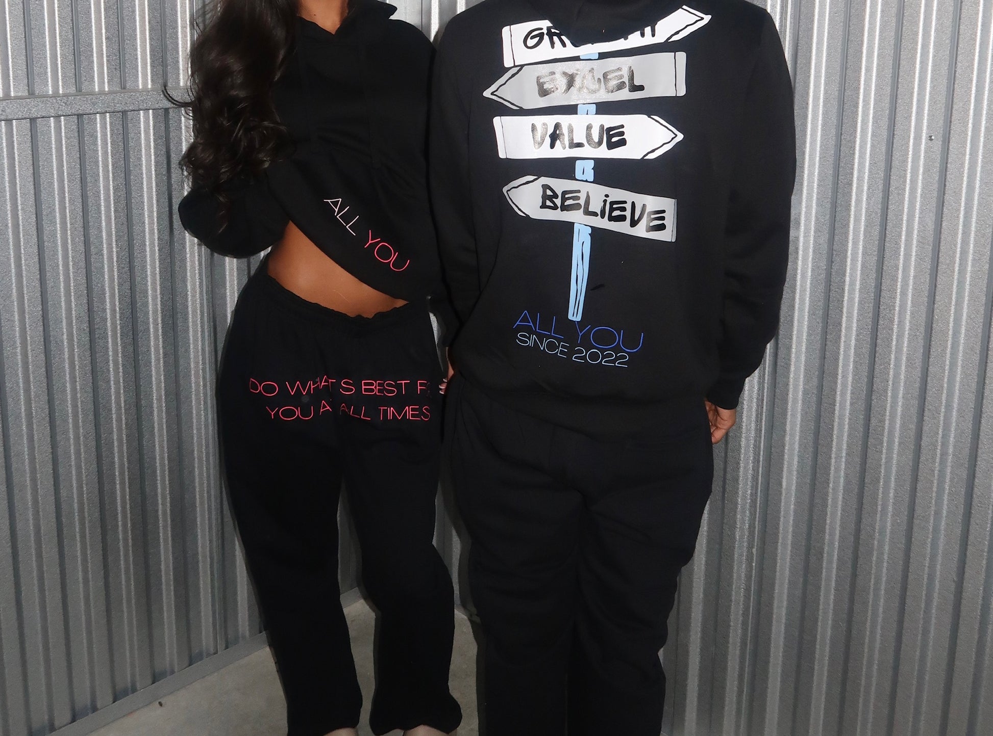 THIS SET HEAVYWEIGHT AND RUNS TRUE TO SIZE WITH FLEECE INSIDE ON BOTH HOODIE AND JOGGERS